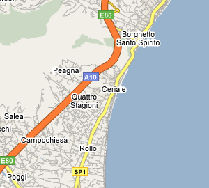 Ceriale è situata lungo la Strada Provinciale (già Strada Statale) 1 Aurelia. Il comune non è raggiungibile direttamente tramite autostrada, pertanto il casello autostradale di Borghetto Santo Spirito sull'Autostrada A10 è l’uscita consigliata per raggiungere la destinazione.